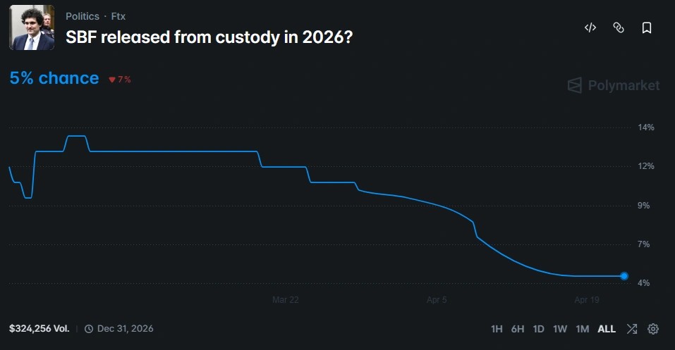 President Trump has mentioned he won’t pardon SBF, and prediction markets at present put the prospect of a 2026 pardon at solely 5%, however SBF appears decided to maintain pushing his model of occasions regardless.