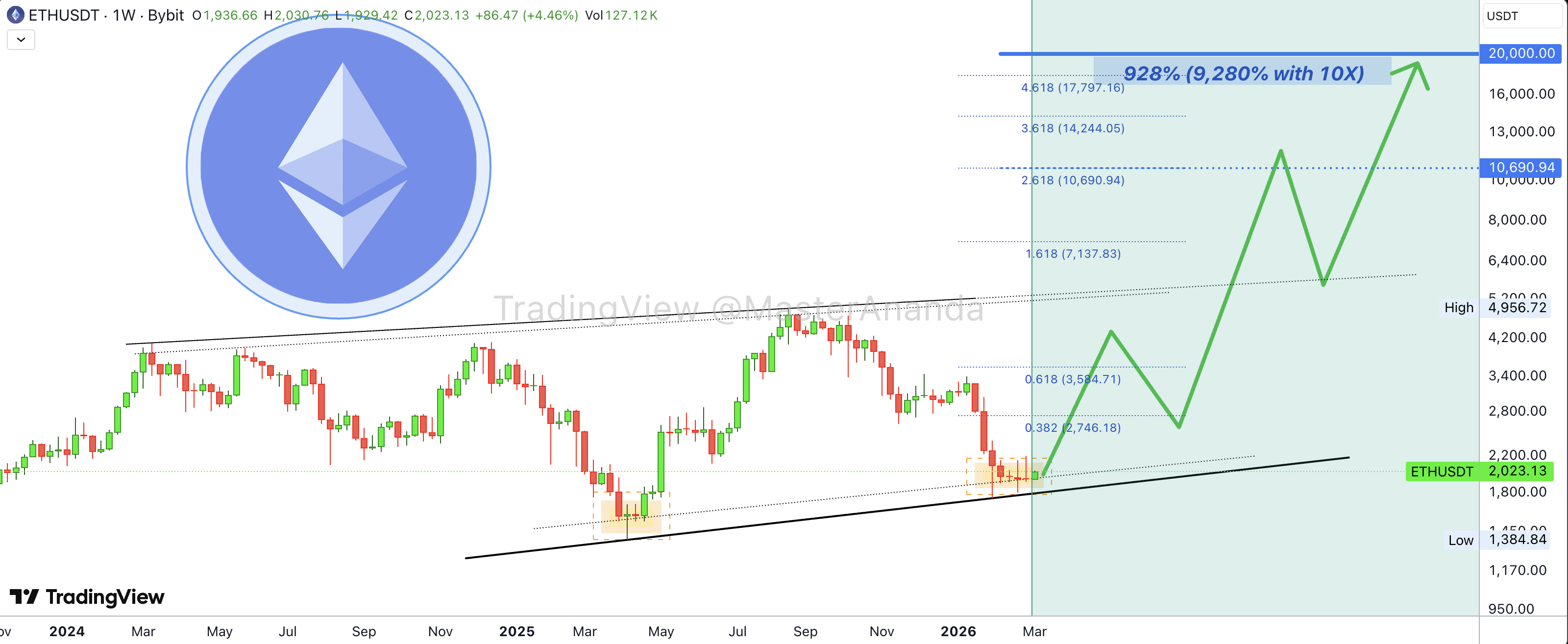 Following this development, the analyst believes that the digital asset’s worth will hit 5-figures. Nevertheless, regardless of $10,000 trying extra elusive with every passing day, Grasp Ananda says it doesn’t appear like the all-time excessive goal for Ethereum. As a substitute, $10,000 is just a “mid-portion” goal, which means that he expects the worth to rise increased.